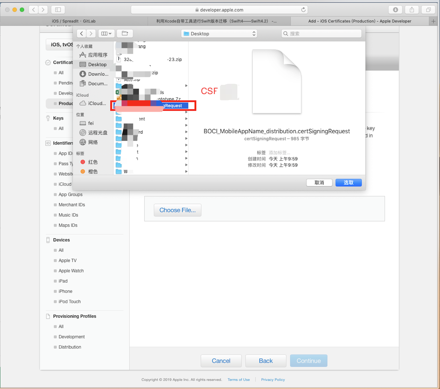 | 5 | BOCI_appName_distribution_apns.certSigningRequest | CSR | 自己保留 |