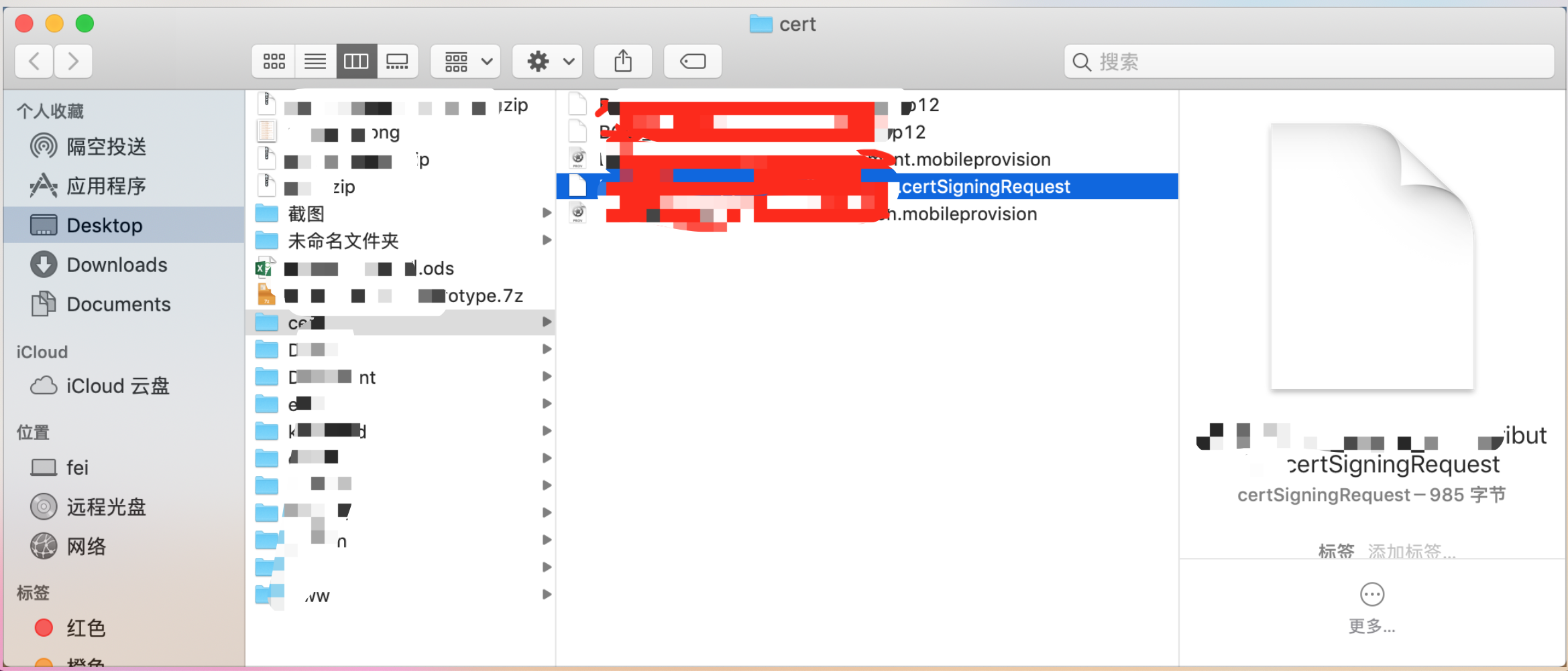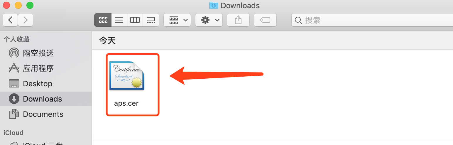 下载完毕后会得到一个aps.cer证书, 但是不能直接发给别人使用, 需要双击cer文件,安装到钥匙串中,然后导出为.p12文件.