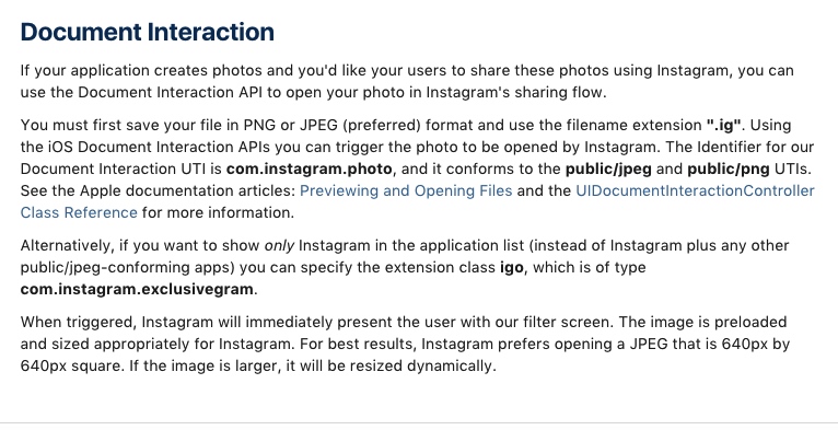 分享文档:https://www.instagram.com/developer/mobile-sharing/iphone-hooks/
